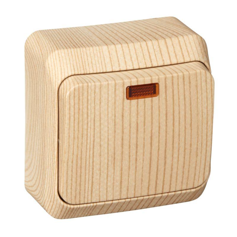 Выключатель 1-кл. ОП Этюд Дача 10А IP20 с подсветкой сосна SE BA10-005D