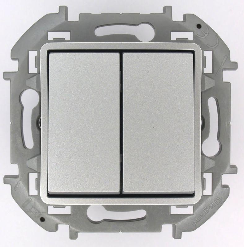 Переключатель модульный 2-кл. Inspiria 250В 10AX с подсветкой 1алюм. IEK 673667