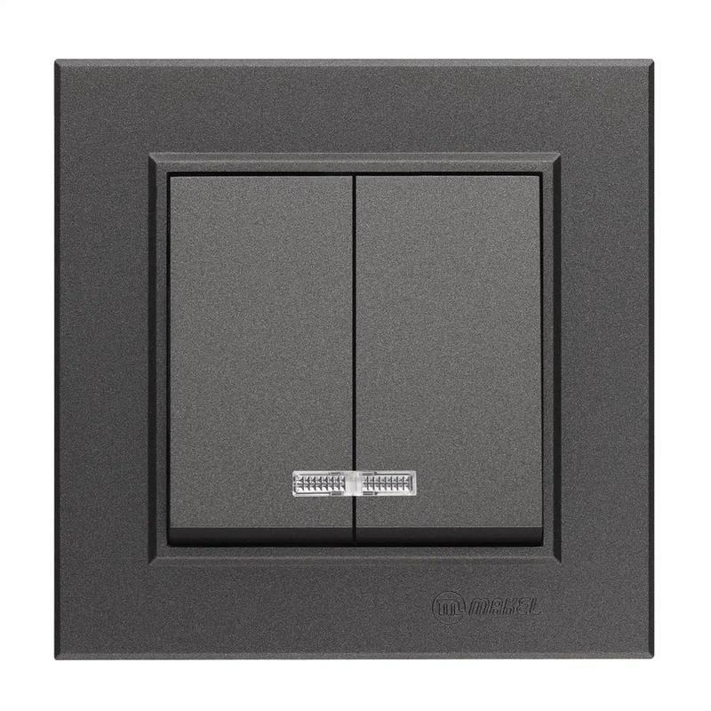 Выключатель 2-кл. СП Karea 10А IP20 дым. металлик с подсветкой Makel 56050023