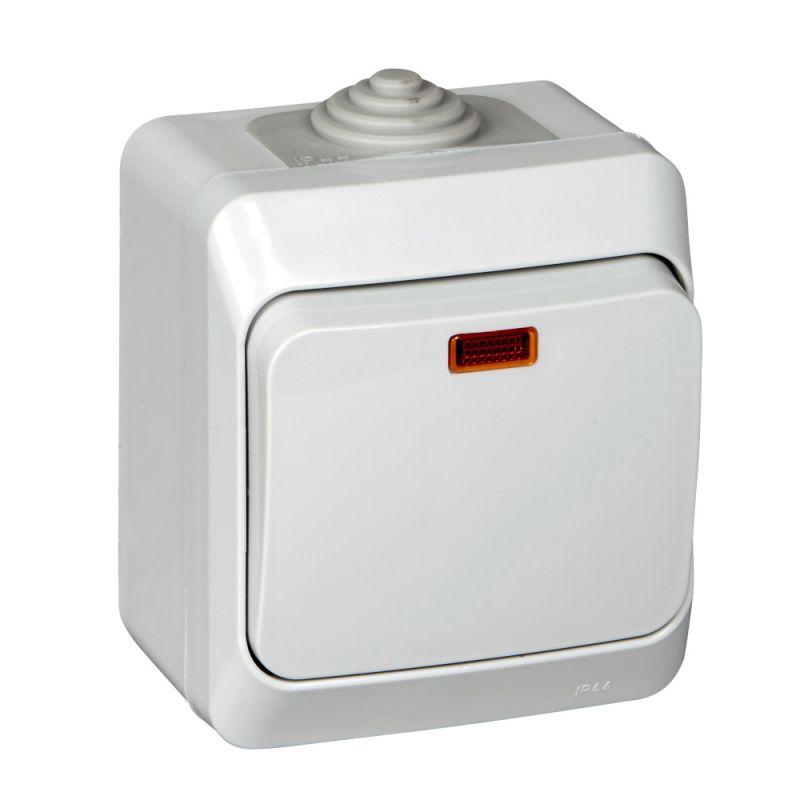 Выключатель 1-кл. ОП Этюд 10А IP44 10AX с подсветкой сер. SE BA10-045C