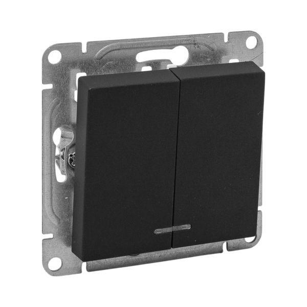 Выключатель 2-кл. СП Эпика с подсветкой механизм черн. EKF UP1-SWB-24