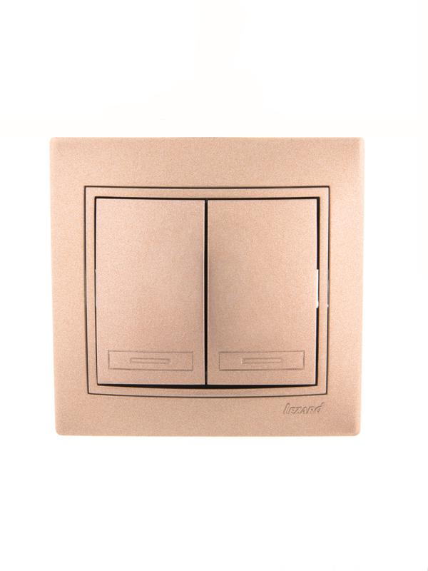 Выключатель 2-кл. СП Mira 10А IP20 со вставкой свет. корич. перламутр. LEZARD 701-3131-101