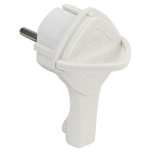 Вилка Евро угловая 16А с заземл. с кнопкой бел. Rexant 16-0730