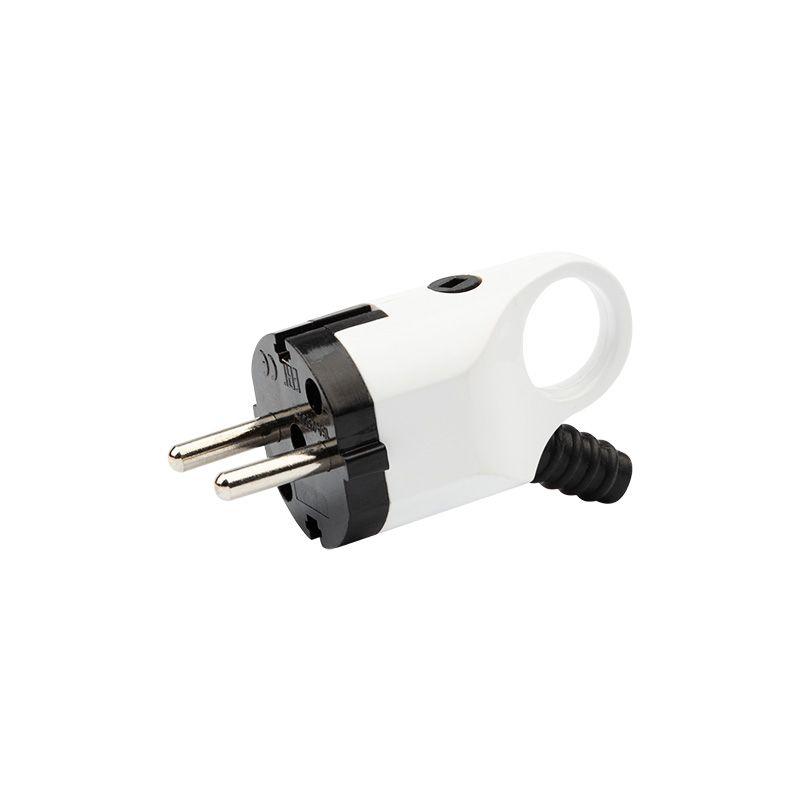 Вилка угловая 16А с заземл. евро стандарт с ушком (кольцом) бел./черн. Rexant 11-8952