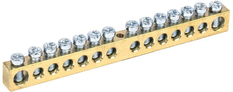 Шина PEN "земля-ноль" 8х12мм 14/1 (14групп/крепеж по центру) IEK YNN20-14-100