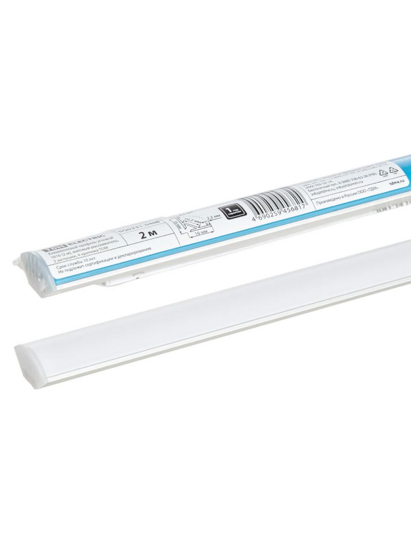 Алюминиевый профиль угловой 1616 (2 м), матовый рассеиватель, 2 заглушки, 4 крепежа TDM