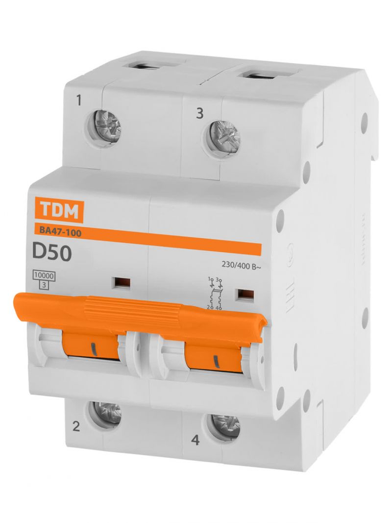 Авт. выкл. ВА47-100 2Р 50А 10кА х-ка D TDM
