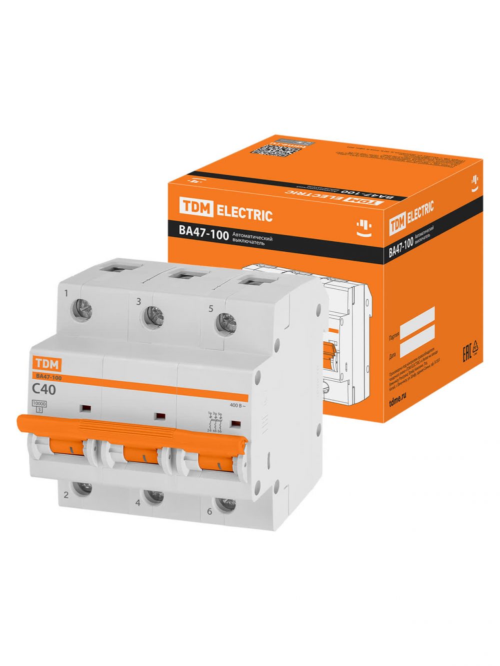 Авт. выкл. ВА47-100 3Р 40А 10кА х-ка С TDM