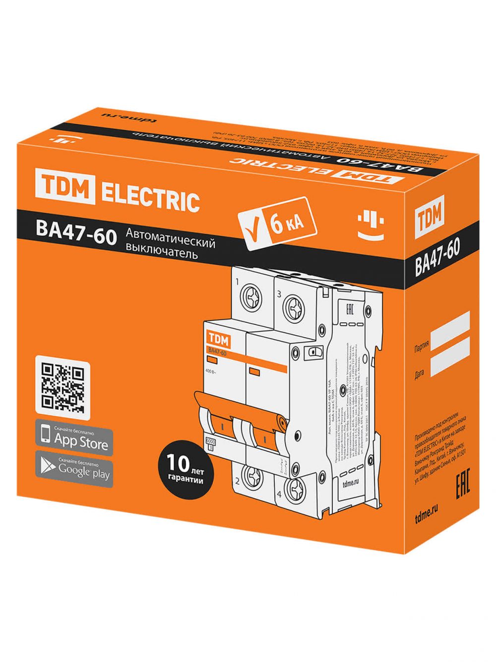 Авт. выкл. ВА47-60 2Р 3А 6кА х-ка С TDM