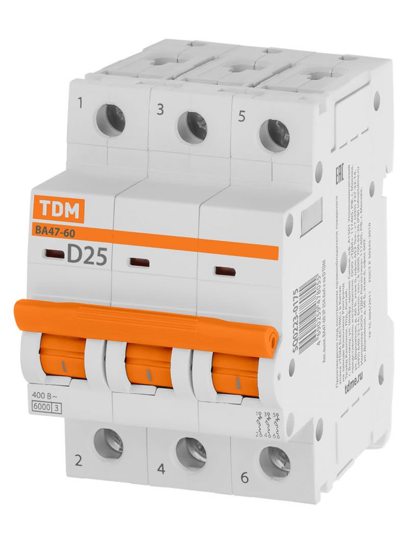 Авт. выкл. ВА47-60 3Р 25А 6кА х-ка D TDM