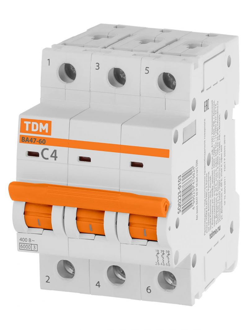 Авт. выкл. ВА47-60 3Р 4А 6кА х-ка С TDM