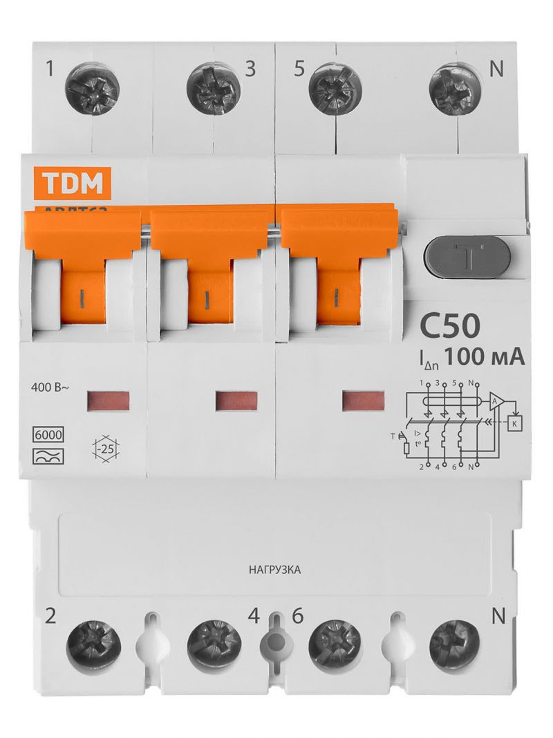 АВДТ 63 4P(3Р+N) C50 100мА 6кА тип А - Автоматический Выключатель Дифференциального тока TDM