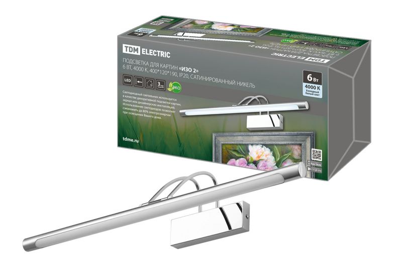 Подсветка для картин «ИЗО 2» 6 Вт, 4000 K, 400*210*110, IP20, сатинированный никель, TDM