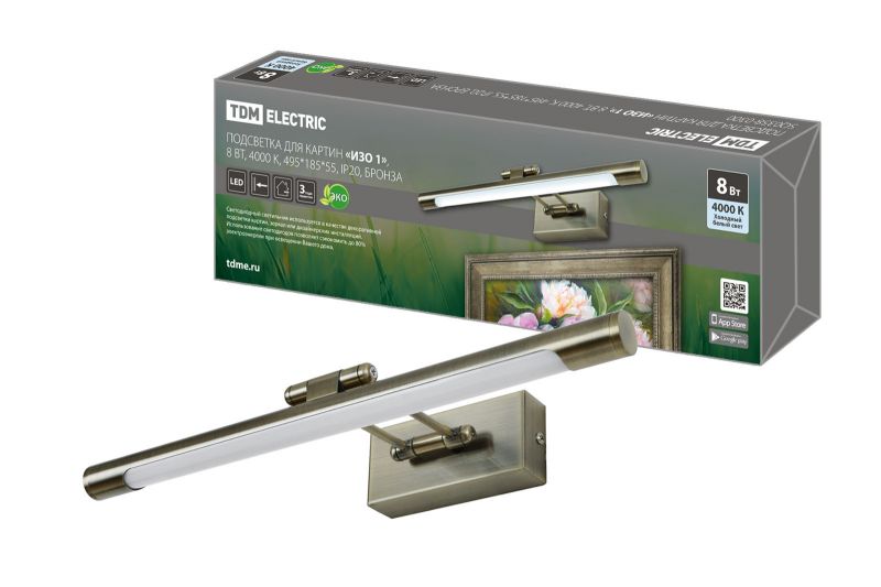 Подсветка для картин «ИЗО 1» 8 Вт, 4000 K, 495*195*60, IP20, бронза, TDM