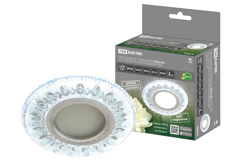Светильник встраиваемый СВ 03-07 MR16 50Вт G5.3 LED подсветка 3 Вт зеркальный/хром TDM