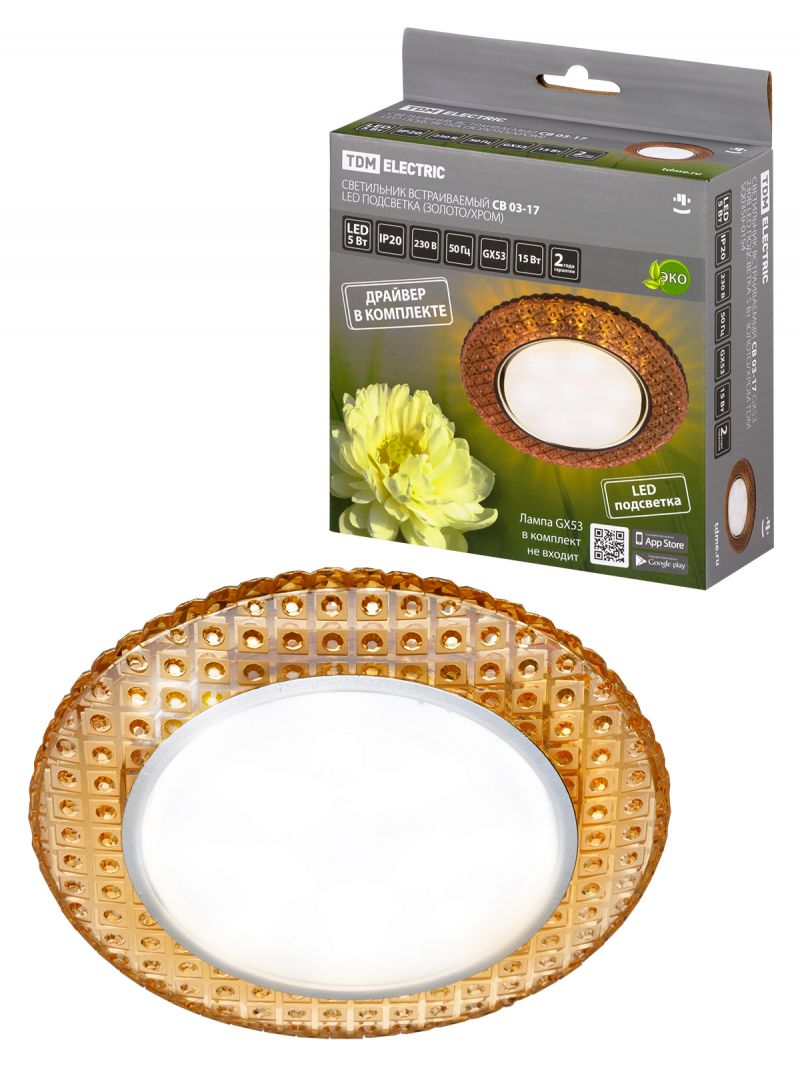 Светильник встраиваемый СВ 03-17 GХ53 230В LED подсветка 5 Вт золото/хром TDM