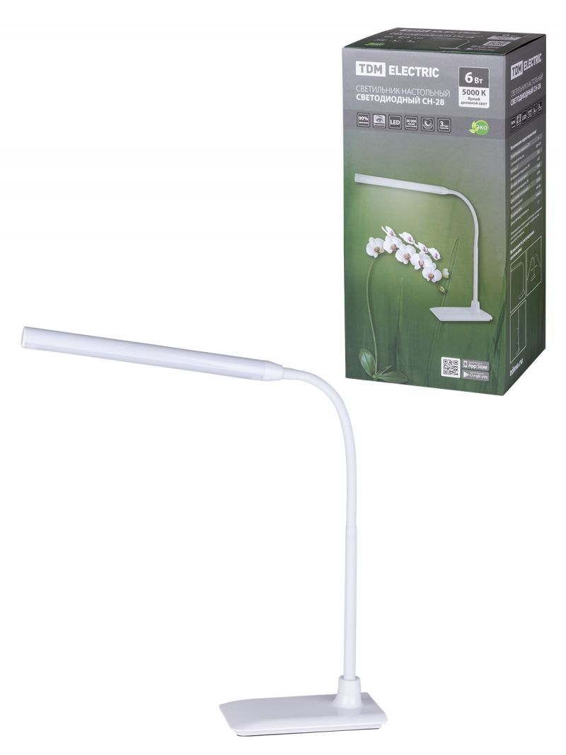 Светильник светодиодный настольный СН-28, 6 Вт, сенсор-диммер, 5000 К, 220 В, белый, TDM