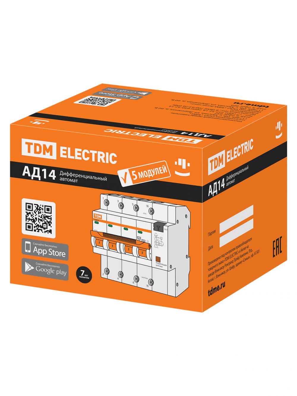 Диф. автомат АД14 4P, C25, 300 мА, 4,5 кА, тип АС, 5 мод, TDM