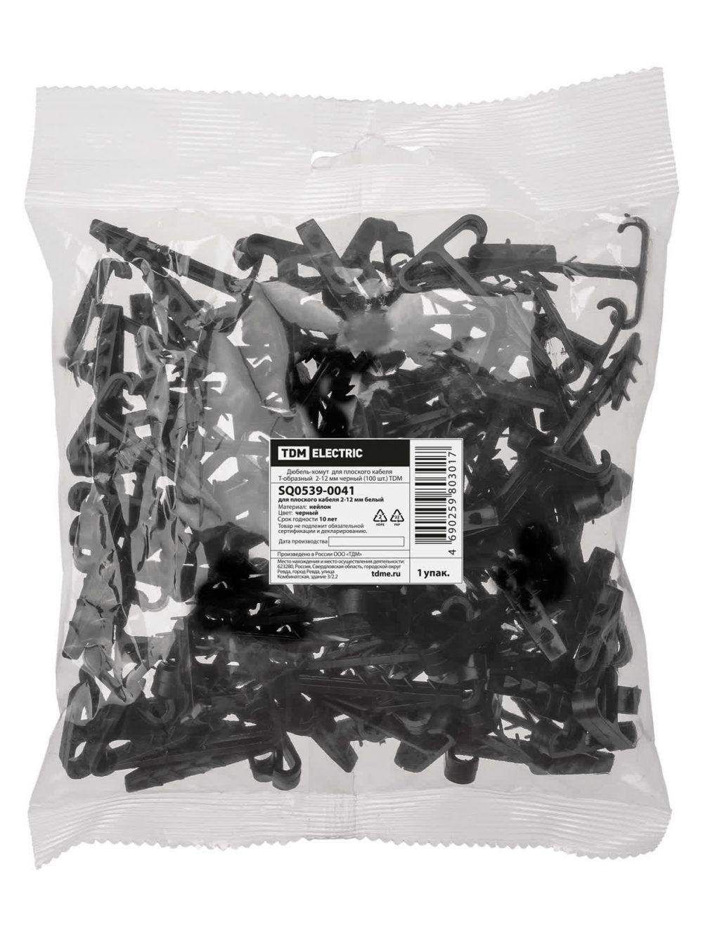 Дюбель-хомут для плоского кабеля Т-образный 2-12 мм черный (100 шт.) TDM