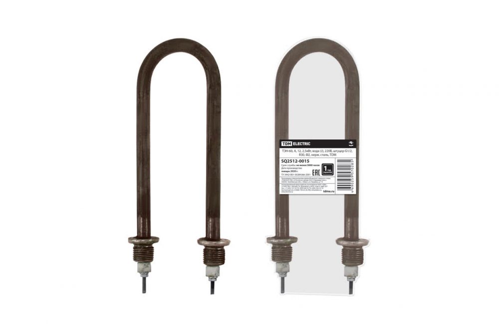 ТЭН-60, А, 12, 2,5кВт, вода (J), 220В, штуцер G1/2, R30, Ф2, нерж. сталь, TDM