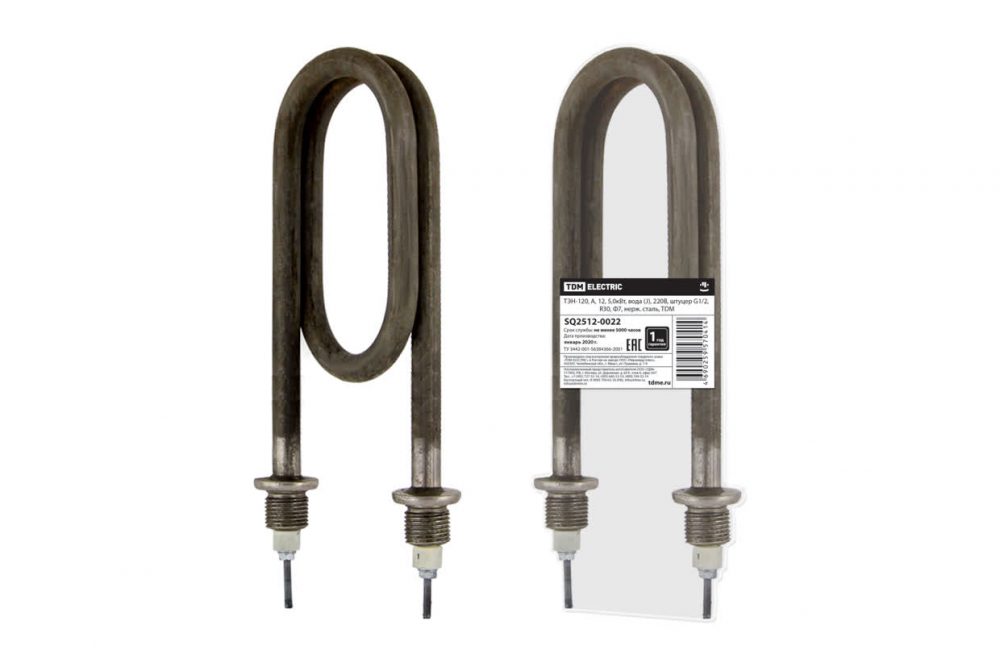 ТЭН-120, А, 12, 5,0кВт, вода (J), 220В, штуцер G1/2, R30, Ф7, нерж. сталь, TDM