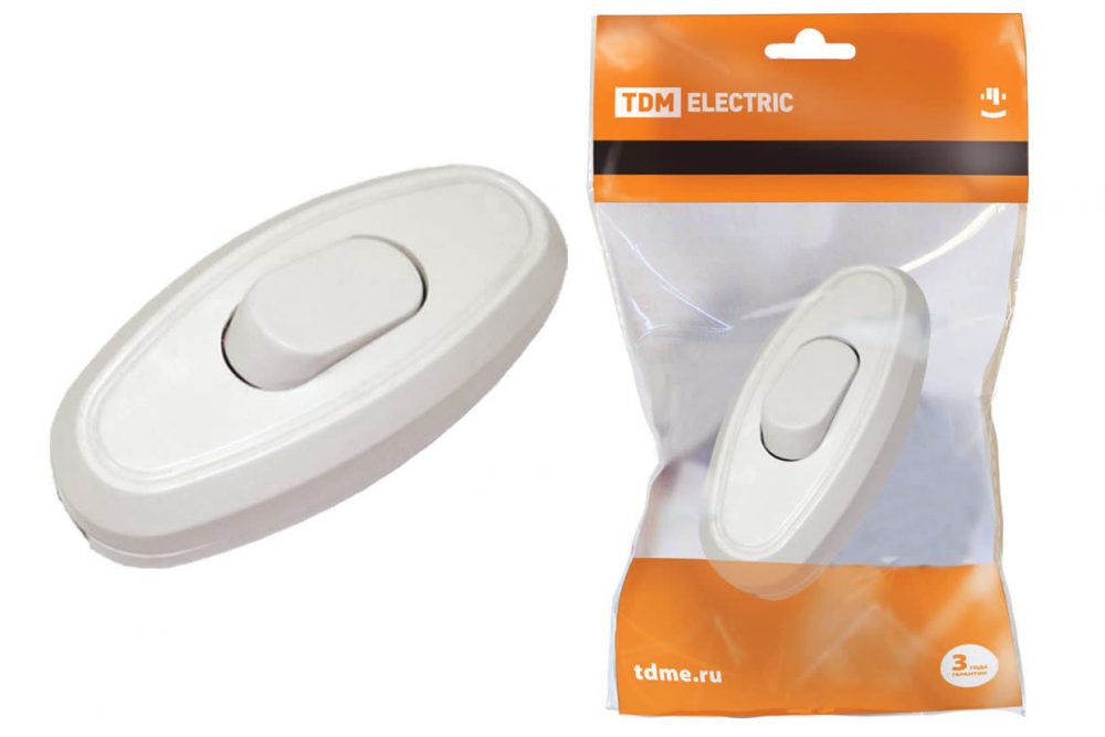 Выключатель на шнур 6А 250В белый TDM