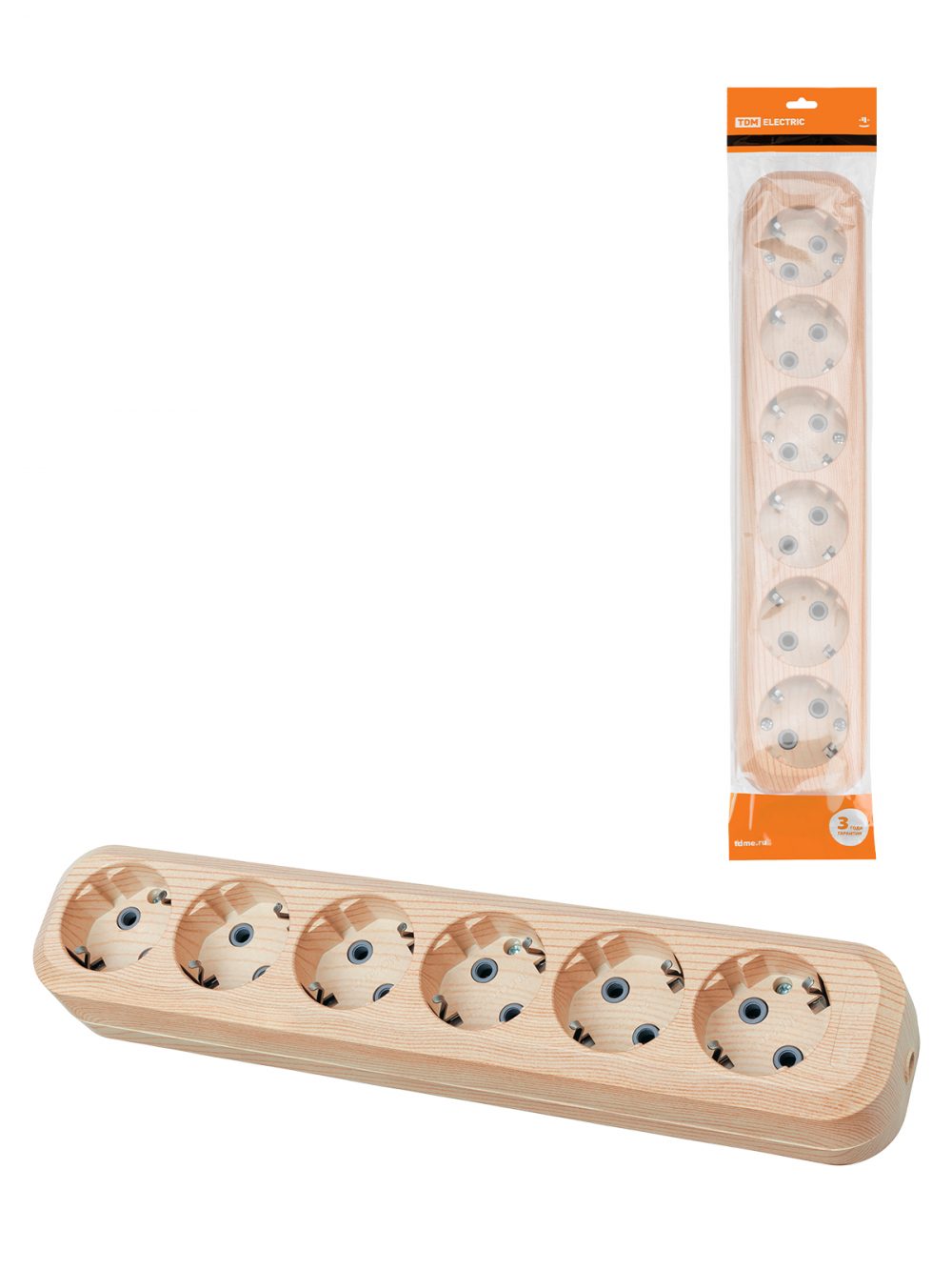 Колодка розеточная 6 гнезд 2П+3 16А 250В "Эко" (сосна) TDM