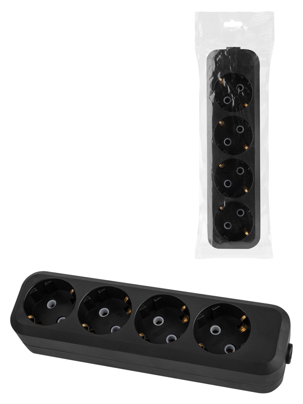 Колодка розеточная 4 гнезда 2П+3 16А 250В черная серии "Народная" К4-3100