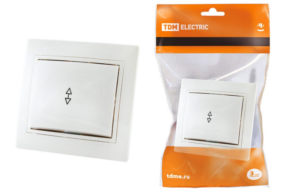 Выключатель на 2 направления 1 кл. 10А белый "Таймыр" TDM