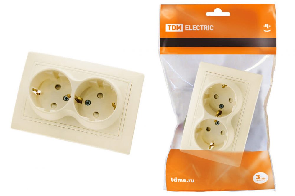 Розетка двойная 2П+З с защ. шт. 16А 250В сл. кость "Таймыр" TDM