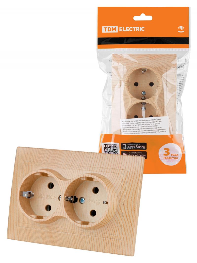Розетка двойная 2П+З 16А 250В "ЭКО" (сосна) "Таймыр" TDM