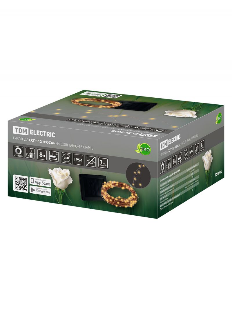 Гирлянда CCГ-112 "Роса" на солнечной батарее, 10 м, 100 LED, теплый белый, IP54, TDM