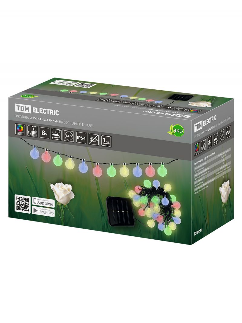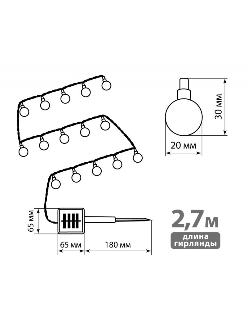 Гирлянда ССГ-154 "Шарики" на солнечной батарее, 2.7 м, 20 LED, многоцветный, IP54, TDM