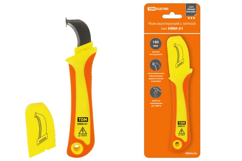Нож монтерский с пяткой, диэлектрический, НМИ-01 "ЭкспертЭлектрик" TDM