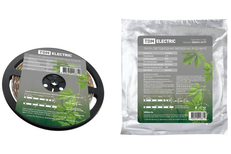 Лента светодиодная SMD5050-60 LED/м-IP65-12 В-14,4 Вт/м-RGB (5 м) TDM