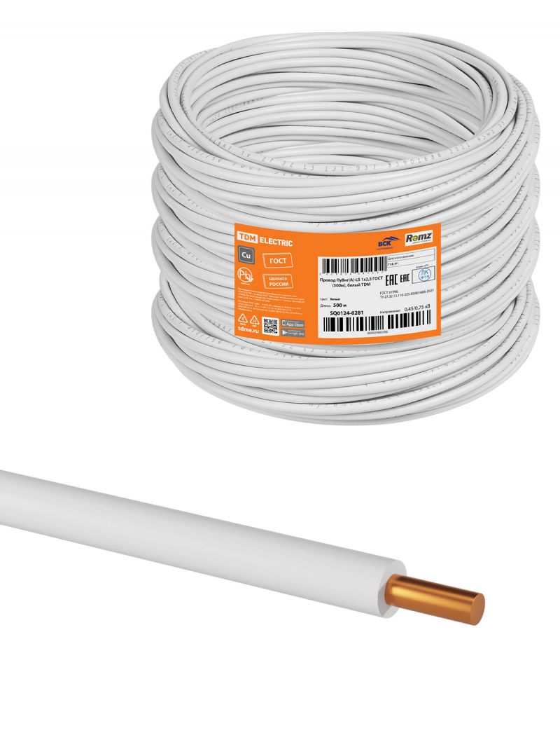 Провод ПуВнг(А)-LS 1х2,5 ГОСТ (500м), белый TDM