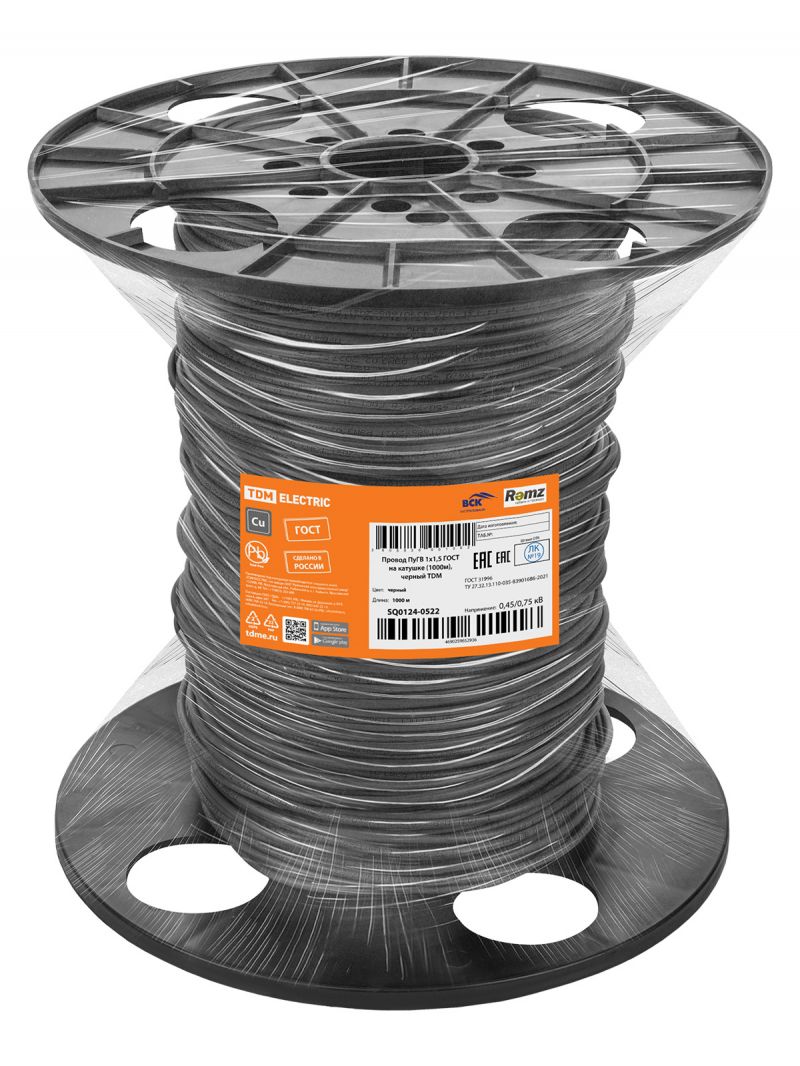 Провод ПуГВ 1х1,5 ГОСТ на катушке (1000м), черный TDM
