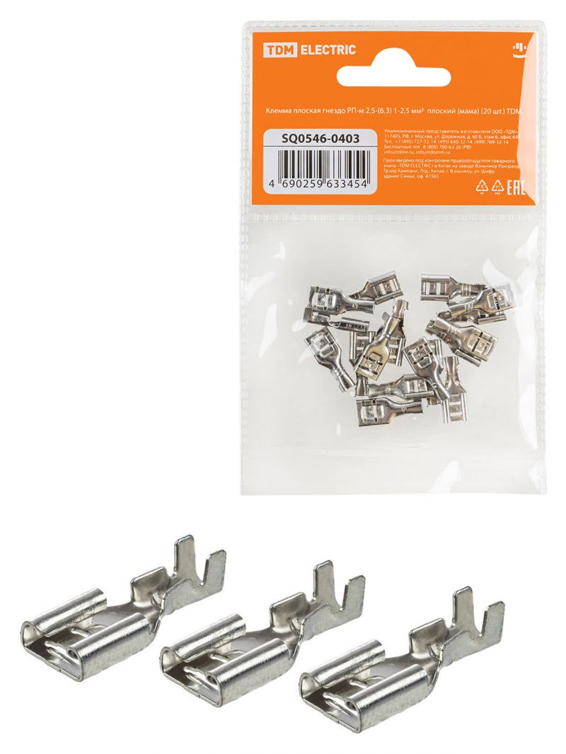 Клемма плоская гнездо РП-м 2,5-(6,3) 1-2,5 мм² плоский (мама) (20шт) TDM
