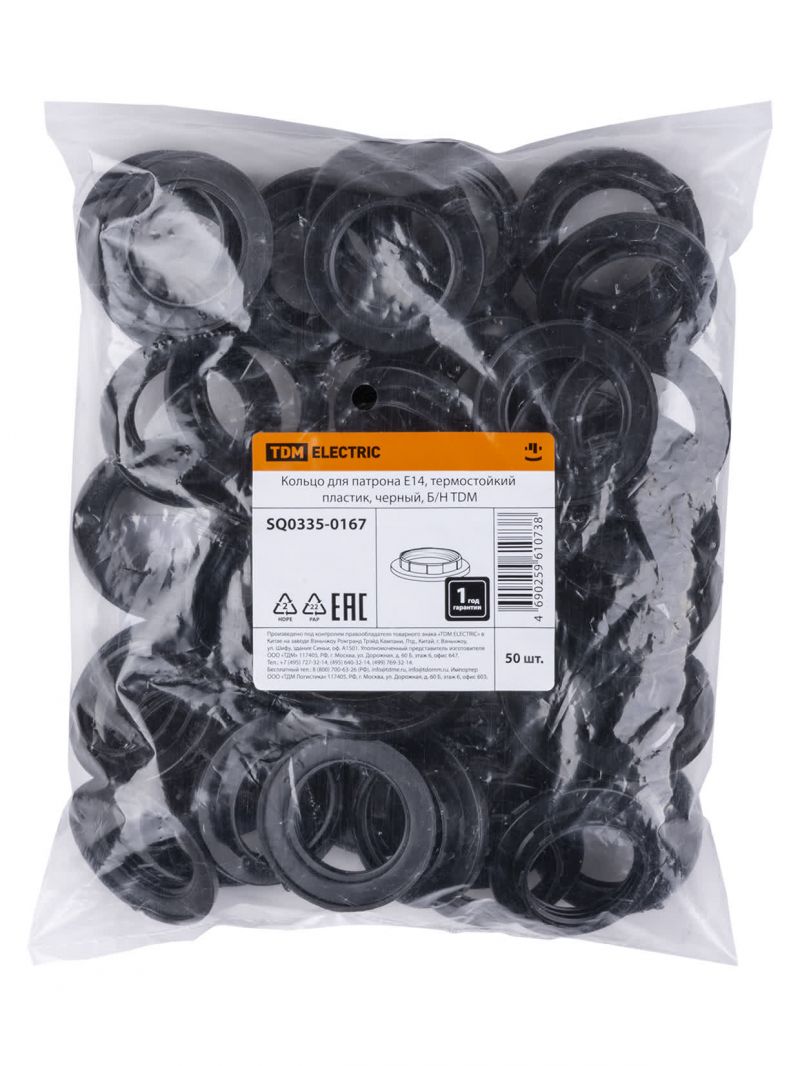 Кольцо для патрона Е14, термостойкий пластик, черный, Б/Н TDM