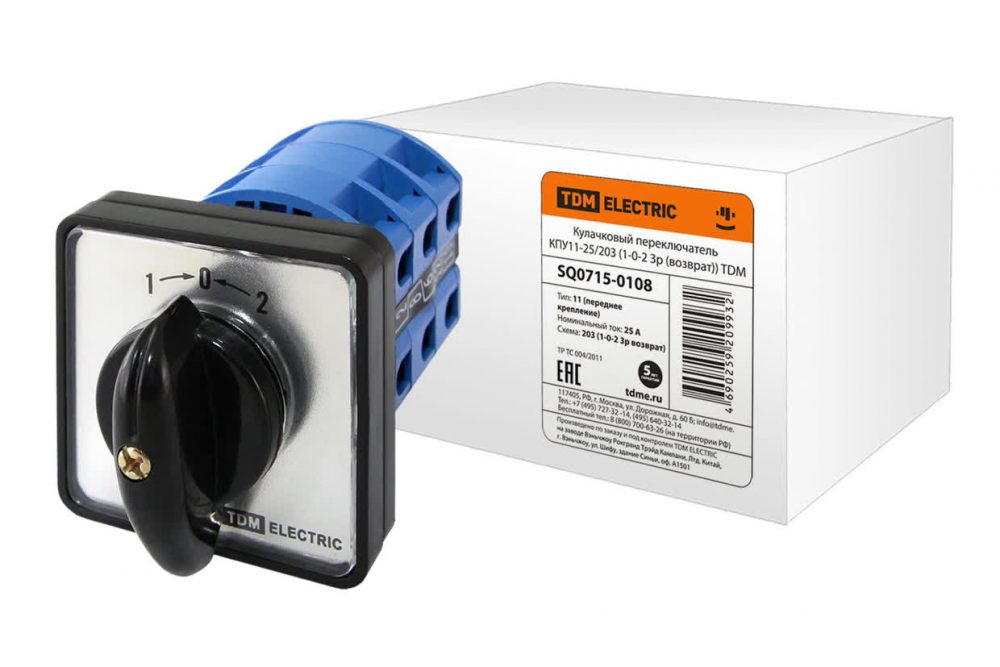 Кулачковый переключатель КПУ11-25/203 (1-0-2 3р (возврат)) TDM