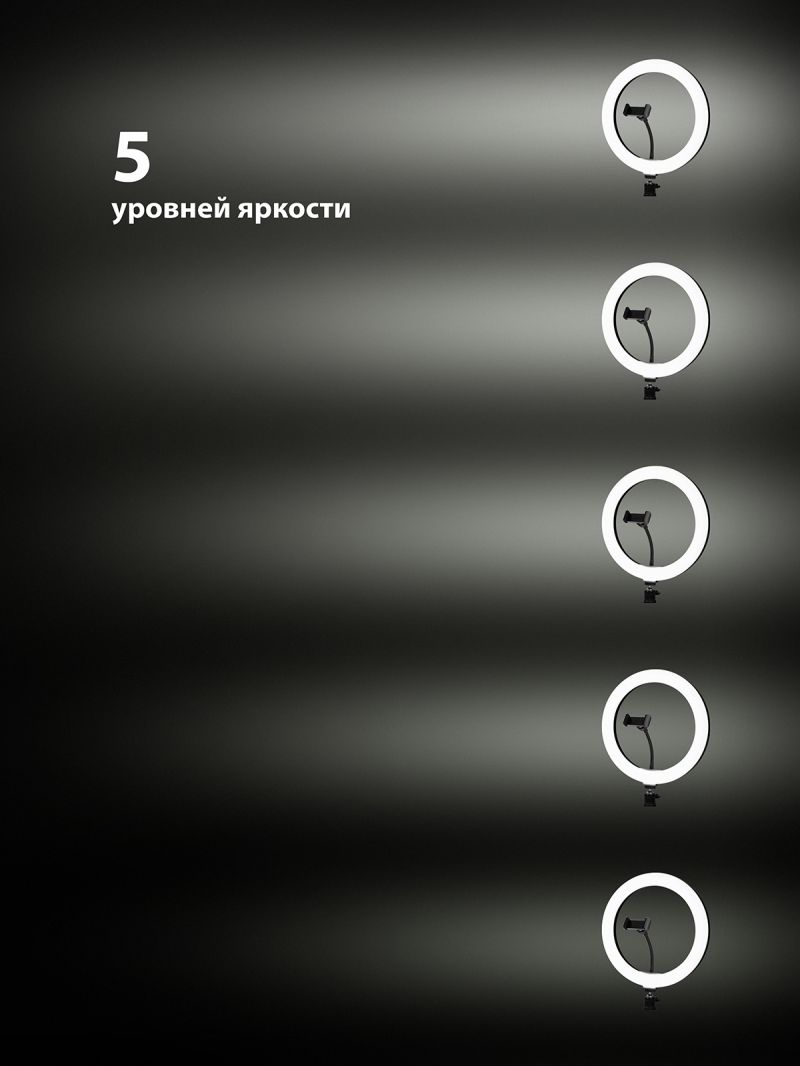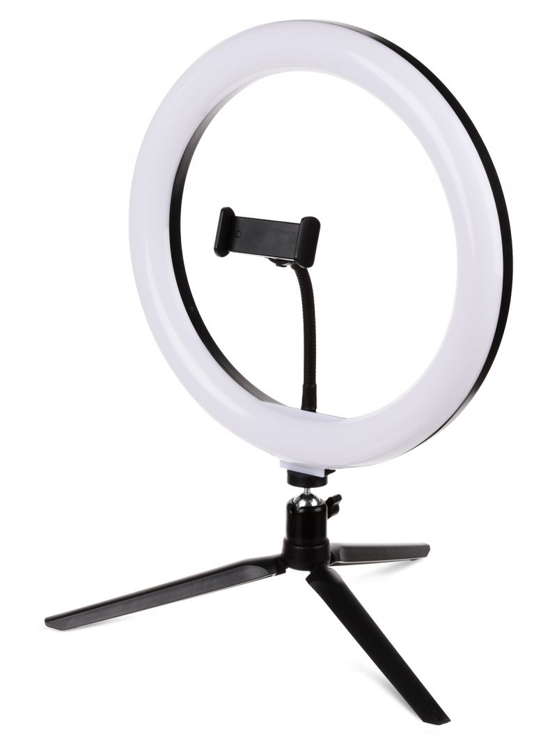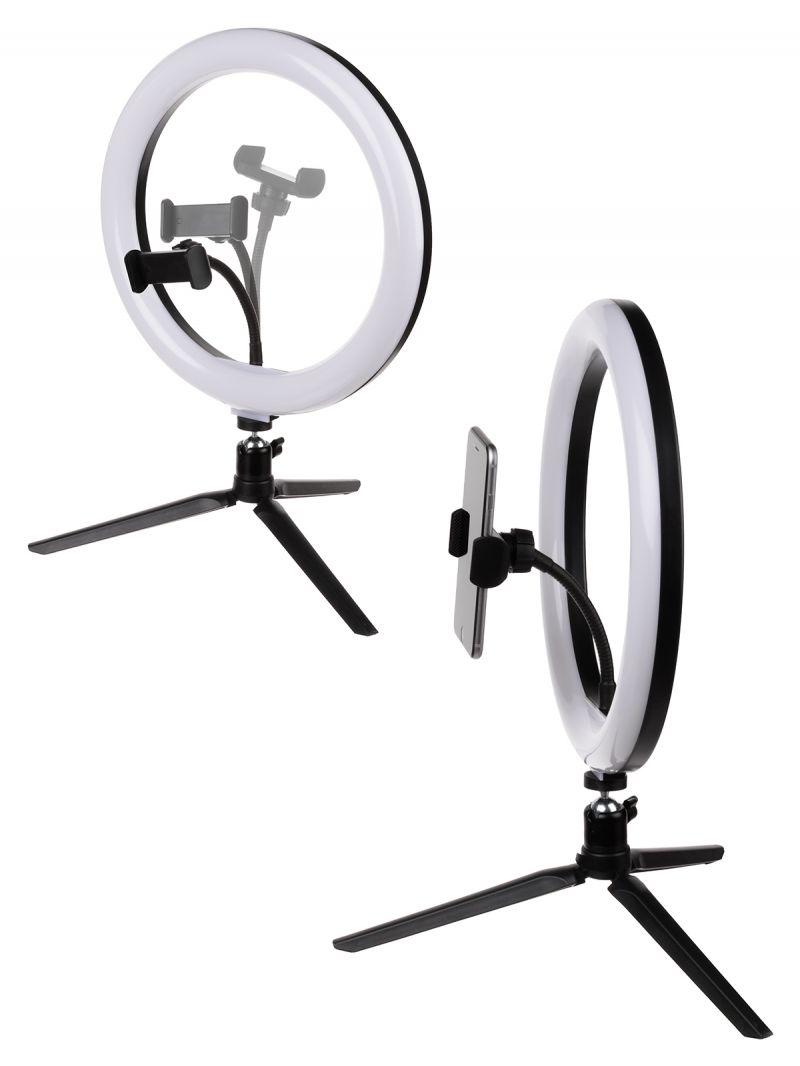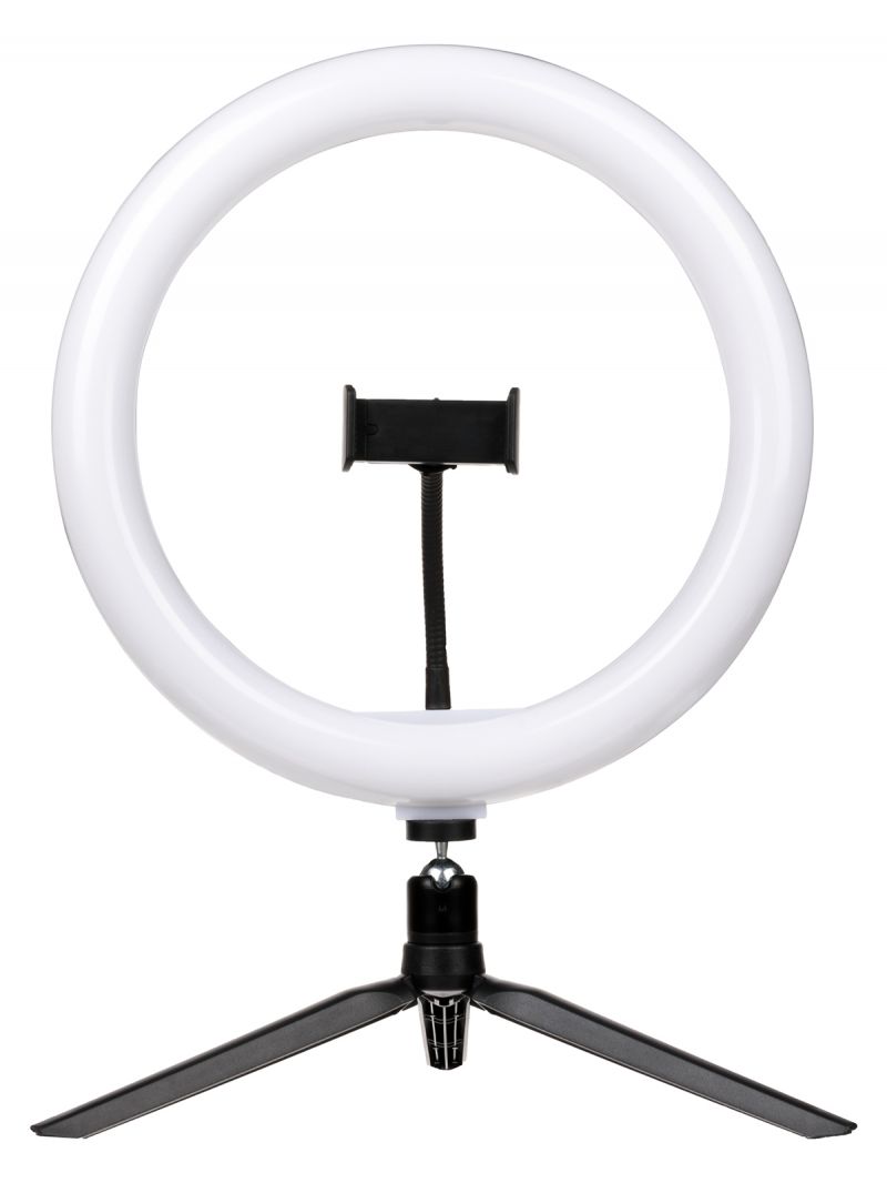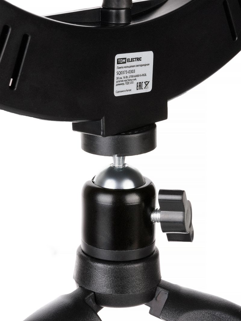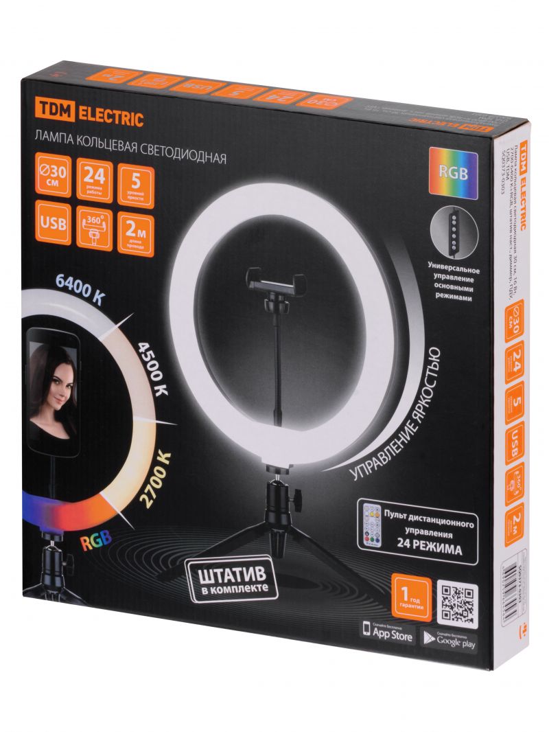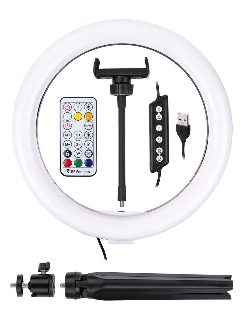 Лампа кольцевая светодиодная 30 см, 16 Вт, 2700-6400 К+RGB, штатив наст., диммер, ПДУ, USB, TDM