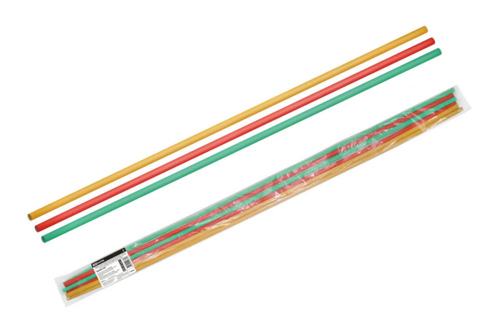 Трубки термоусаживаемые не распространяющие горение, с клеевым слоем, набор 5 цветов (красный, желтый, зеленый, синий, белый) по 2 шт., длиной 1,0 м ТТкНГ(3:1)-2,4/0,8 TDM