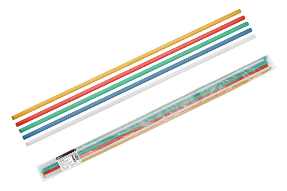 Трубки термоусаживаемые не распространяющие горение, с клеевым слоем, набор 5 цветов (красный, желтый, зеленый, синий, белый) по 2 шт., длиной 1,0 м ТТкНГ(3:1)-4,8/1,5 TDM