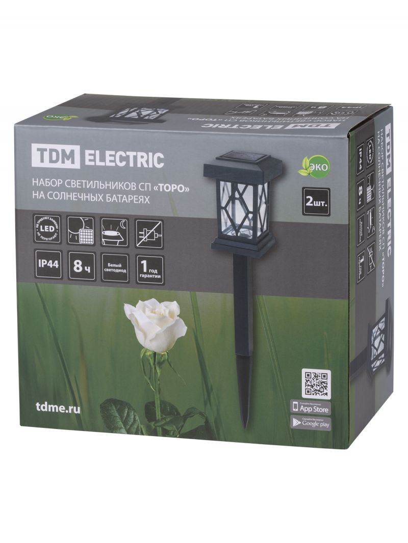 Набор светильников СП "Торо" на солнечных батареях, пластик, 10х44 cм, 2 шт, TDM