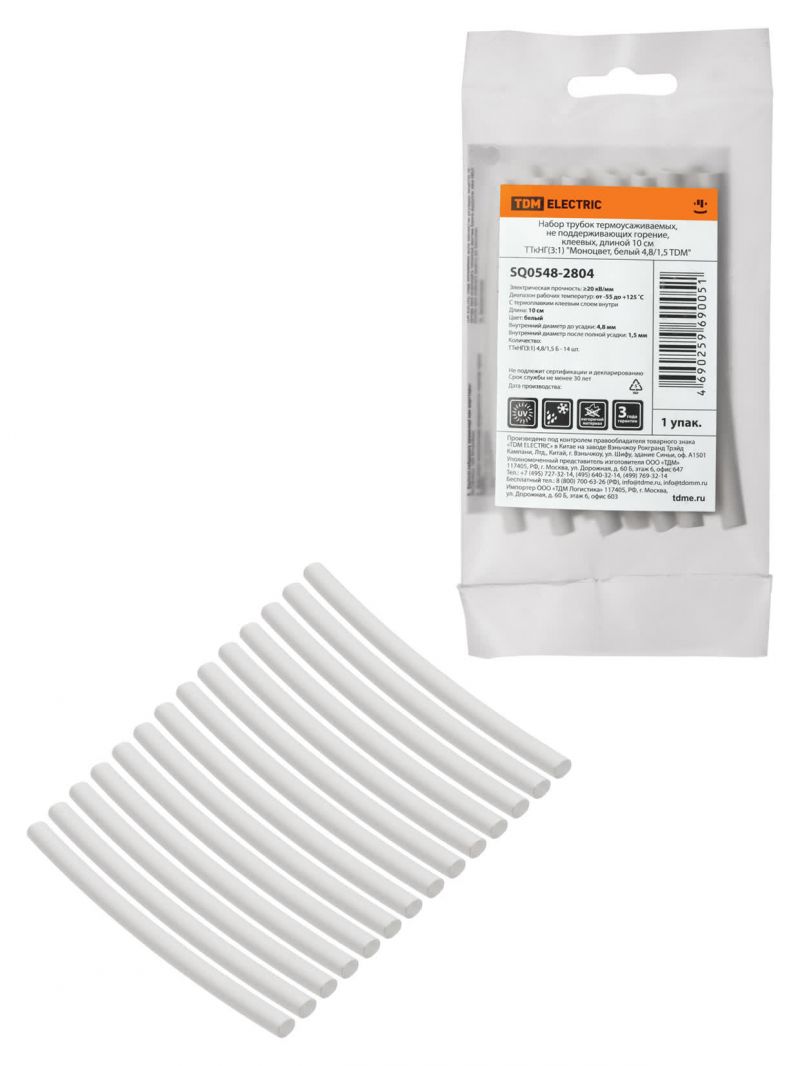 Набор трубок термоусаживаемых, не поддерживающих горение, клеевых, длиной 10 см ТТкНГ(3:1) "Моноцвет, белый 4,8/1,5 TDM"