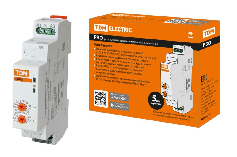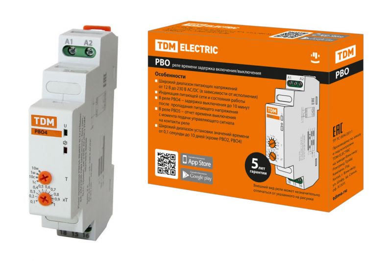 Реле времени РВО1-ВКЛ-0,1с/10дн-8А-12/230В-DIN (зад.вкл., 0,1с-10дней, 12-230В AC/DC) TDM