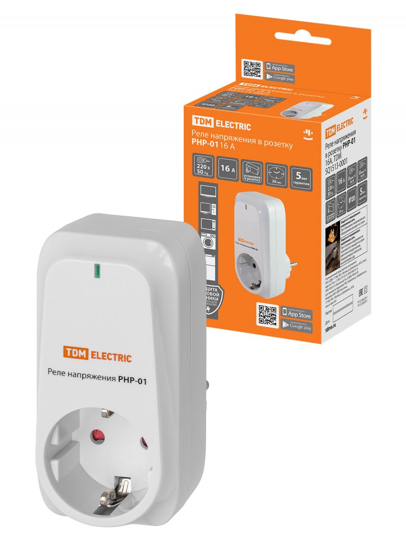Реле напряжения в розетку РНР-02, 16А, дисплей, регул., TDM