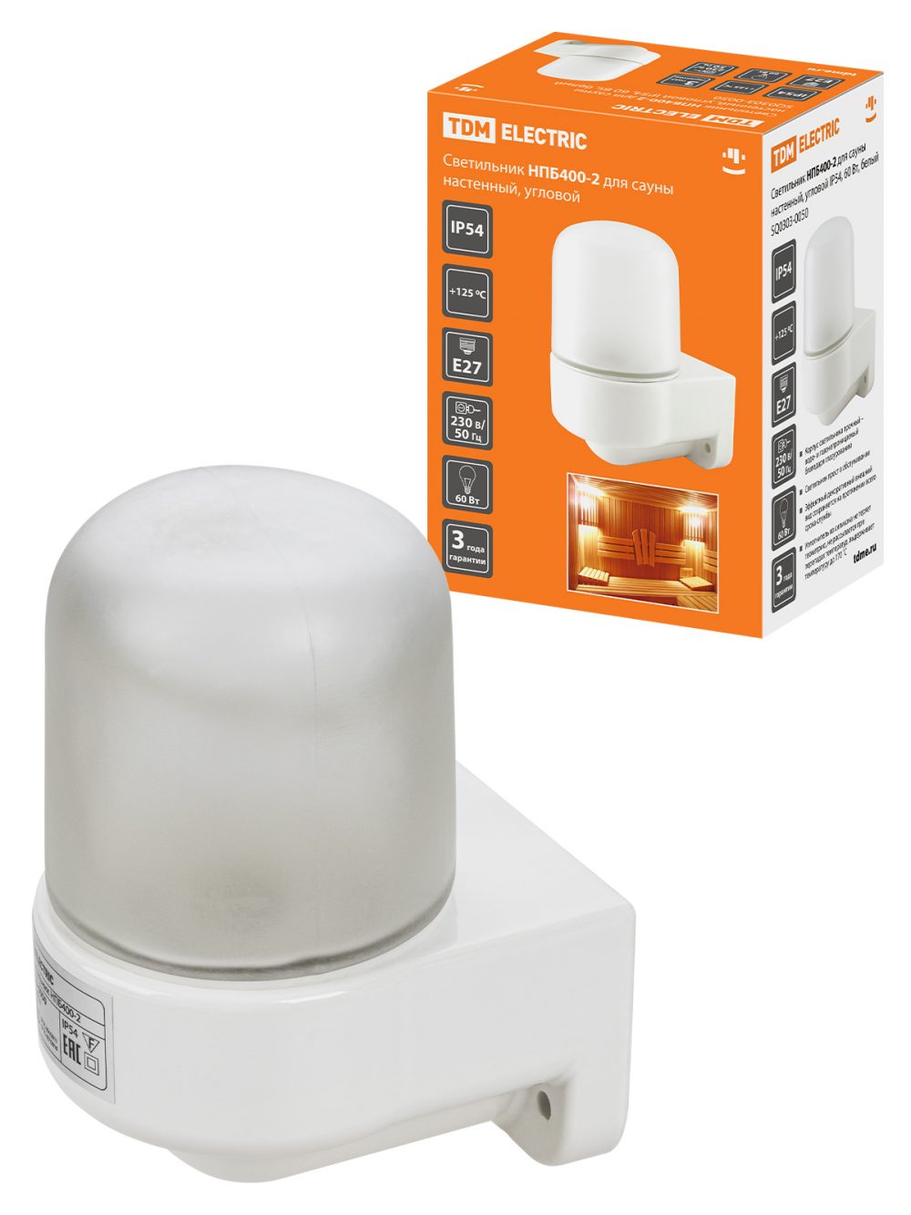 Светильник НПБ400-2 для сауны настенный, угловой, IP54, 60 Вт, белый, TDM
