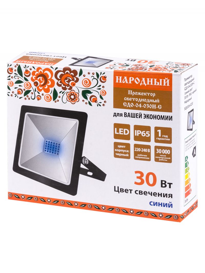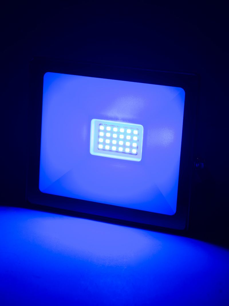 Прожектор светодиодный СДО-04-030Н-С (синий свет) 30 Вт, IP65, черный, Народный