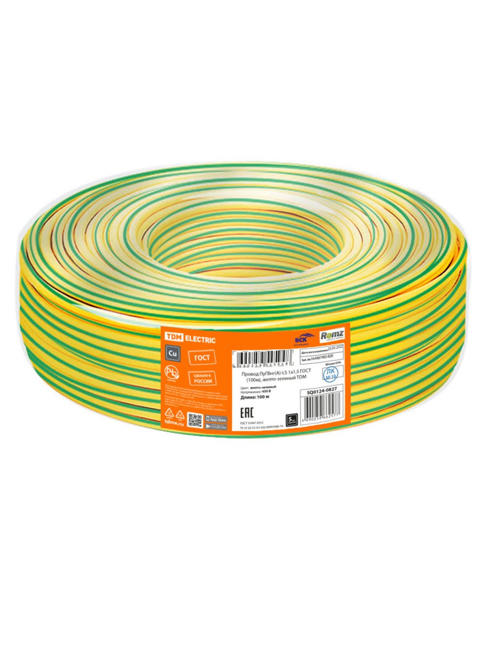 Провод ПуГВнг(А)-LS 1х1,5 ГОСТ (100м), желто-зеленый TDM